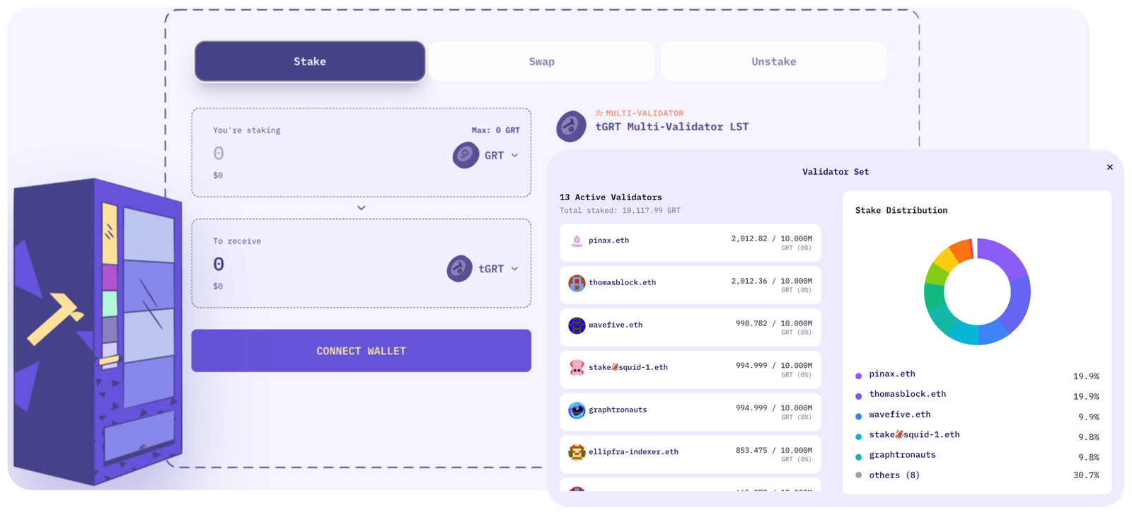 Tender Tokens take into account network health and have rules to ensure healthy stake distribution across PoS networks. The rebalancing happens automatically on a smart contract level. New deposits are staked to the most underallocated validators, while withdrawals are processed from the most overallocated validators.
